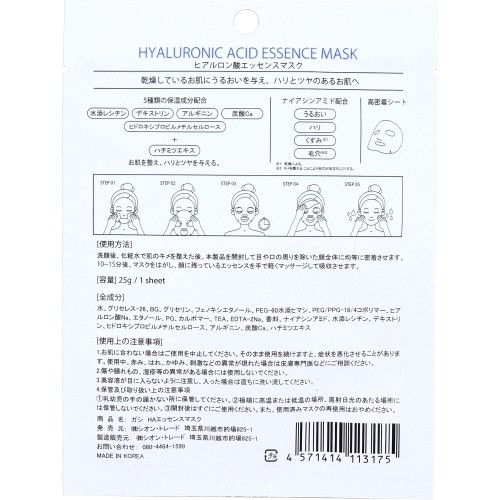 【14周年特別販売】 ヒアルロン酸エッセンスマスク -スキンケアパック- 1枚入