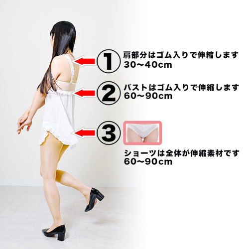 ※スリップ本体のバスト部分はゴム入りで伸縮します