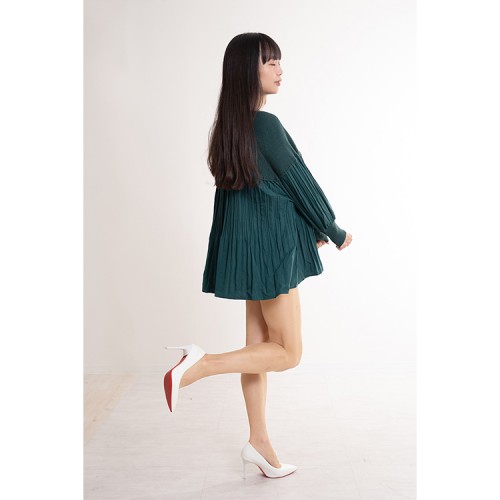 HOME » ファッション » トップス » 【ハイライン】 ガーリー系 オータムニットミニワンピース 長袖 エメラルド