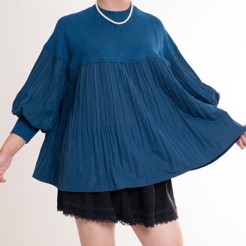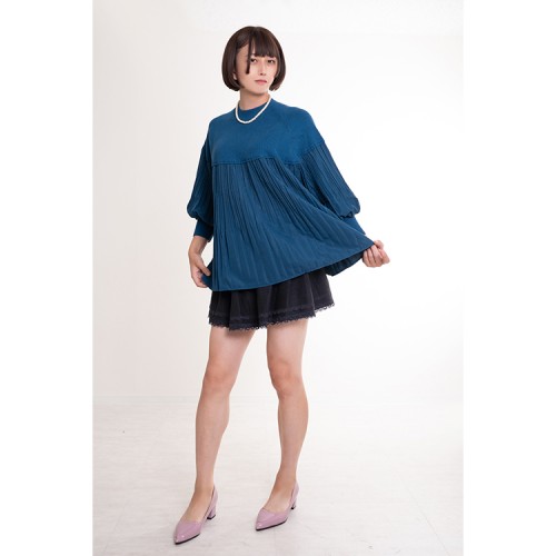 HOME » ファッション » トップス » 【ハイライン】 ガーリー系 オータムニットミニワンピース 長袖 ターコイズ