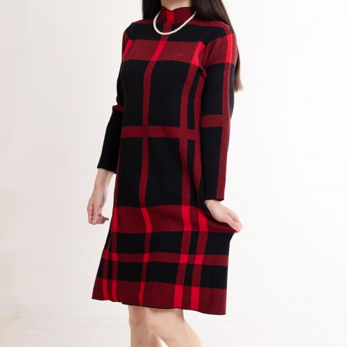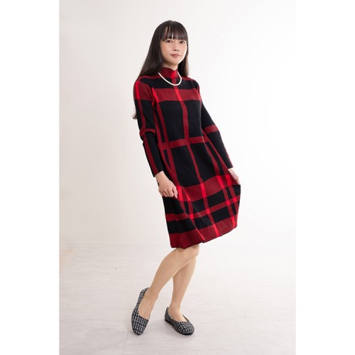 HOME » ファッション » ワンピース » 【ハイライン】 大人セレブ系 ニットワンピース 長袖 レッド
