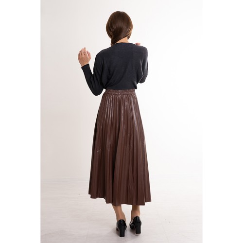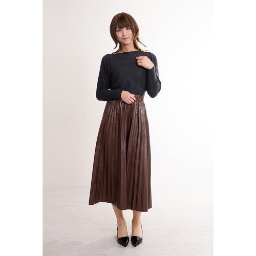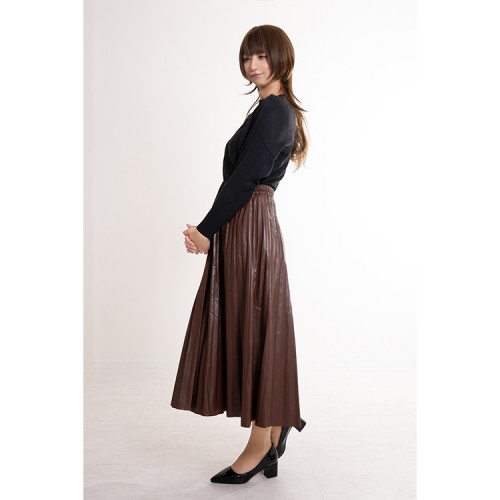 【ハイライン】 清楚系 プリーツフェイクレザースカート ブラウン