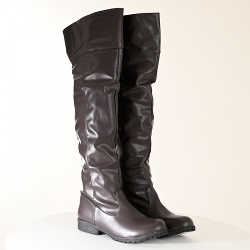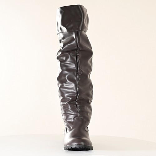【即納】 ゆったりローヒール ロングブーツ ブラウン