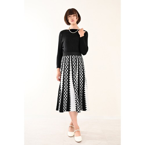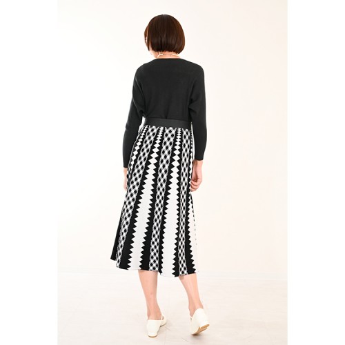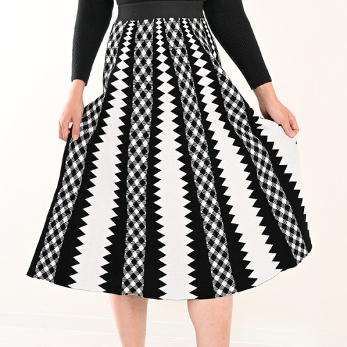 HOME » ファッション » ボトムス » 【ハイライン】 大人可愛い系 ウエスト伸縮!! ミドル丈スカート ジオメトリック柄