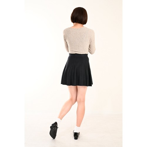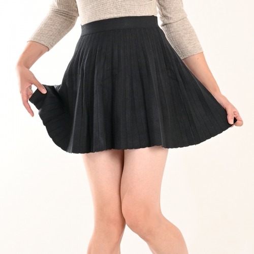 超伸縮!! ハイウエストミニ丈 プリーツスカート ブラック