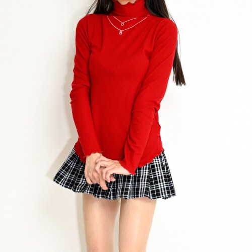 HOME » ファッション » トップス » 【ハイライン】 ネックレス刺しゅう おしゃれハイネックトップス 長袖 レッド