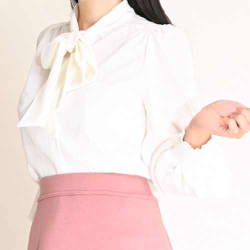 HOME » ファッション » トップス » 【ハイライン】 清楚系☆ フェミニンリボンタイブラウス ホワイト 長袖