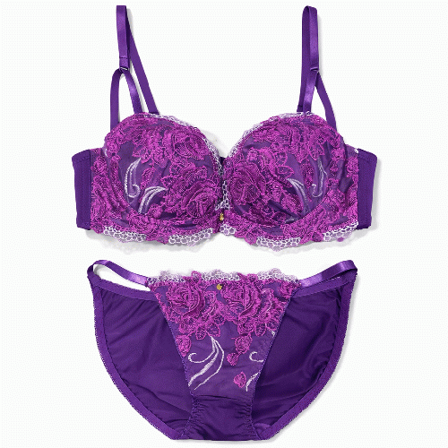 大人の色気を演出する精緻な刺しゅうのブラショーツセット♪SIZE