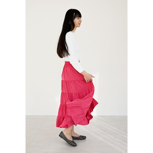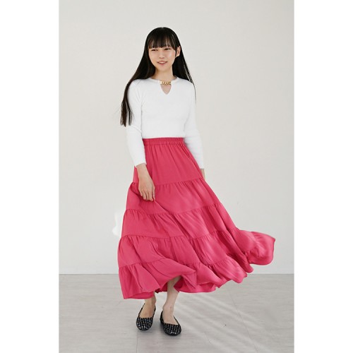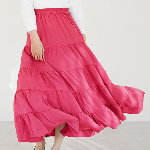 HOME » ファッション » ボトムス » 大人可愛い系 ティアードロング丈スカート ピンク