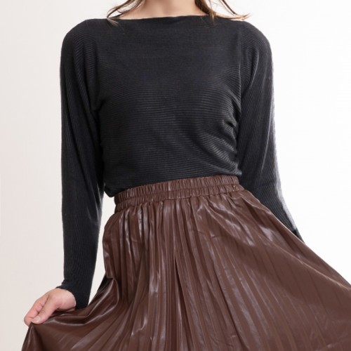 【ハイライン】 超ゆったり 肩レースドルマンニット 長袖 ブラック