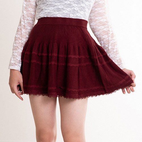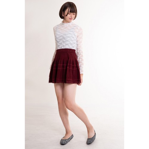 HOME » ファッション » ボトムス » 【ハイライン】 希少! 伸縮ガーリーミニ丈 ハイウエストスカート ワインレッド