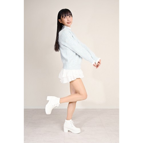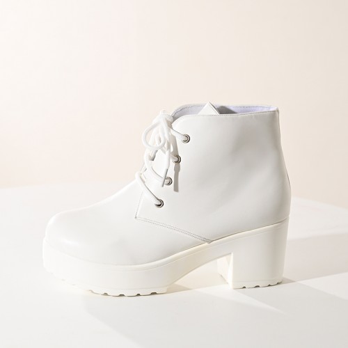 【即納】 厚底 編み上げアンクルブーティ ホワイト