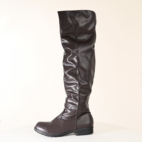 【即納】 ゆったりローヒール ロングブーツ ブラウン