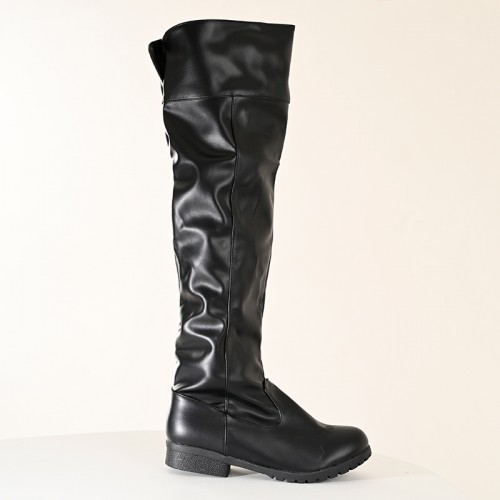 【即納】 ゆったりローヒール ロングブーツ ブラック