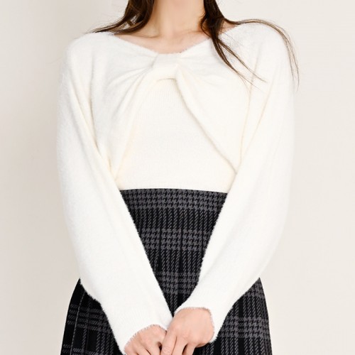 » 【ハイライン】 超伸縮 冬のガーリーリボンボレロニット 長袖