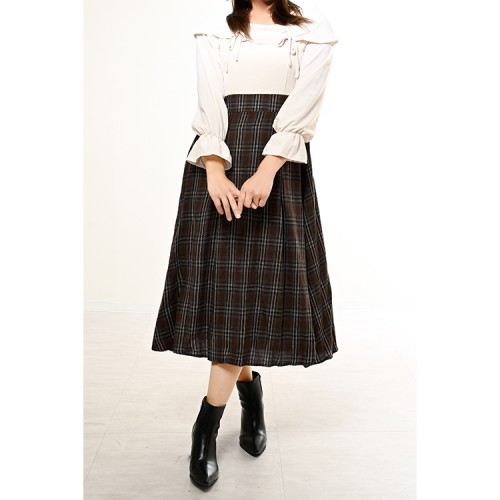 HOME » ファッション » ワンピース » 【ハイライン】 ラウンジガール系 冬の上質ドッキングワンピース 長袖 ホワイト系