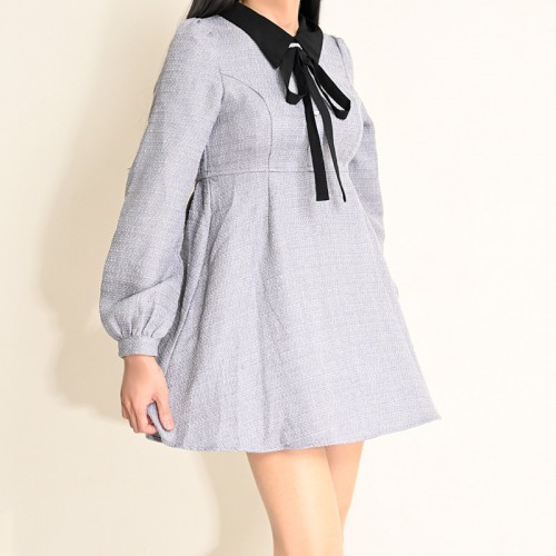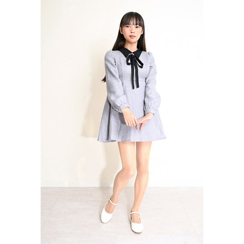 HOME » ファッション » ワンピース » 【ハイライン】 お嬢様系 ミニ丈リボンタイワンピース グレー