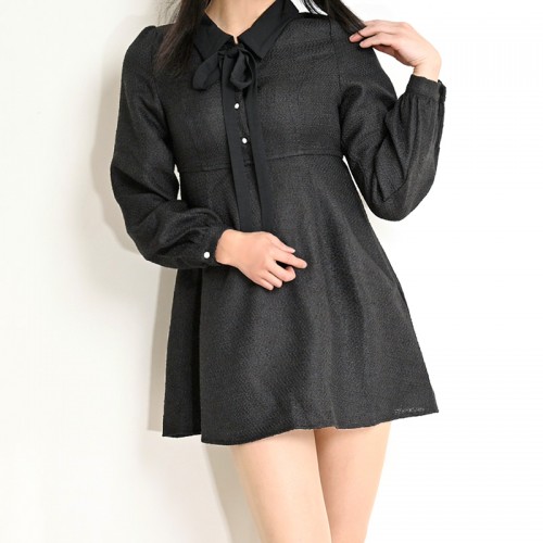 HOME » ファッション » ワンピース » 【ハイライン】 お嬢様系 ミニ丈リボンタイワンピース ブラック