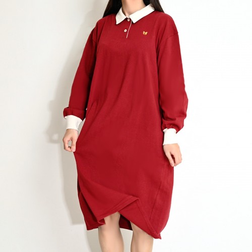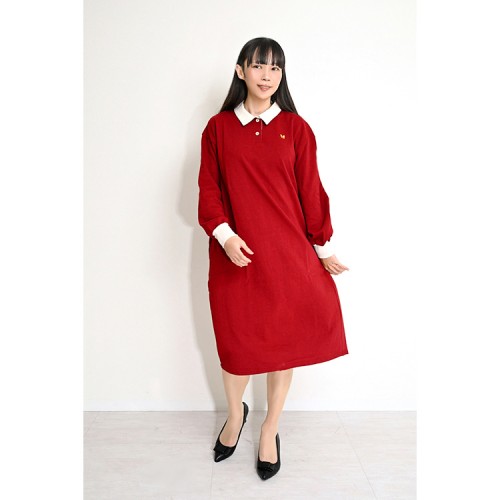 HOME » ファッション » ワンピース » 【ハイライン】 ガーリー系 130cm♪ 超ワイドなポロワンピース レッド 長袖