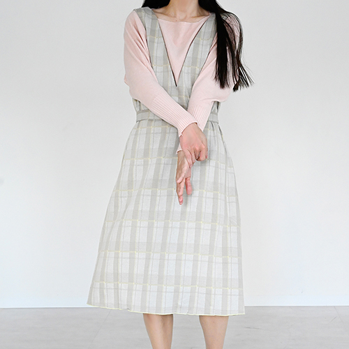 HOME » ファッション » ボトムス » 超ゆったり☆ オシャレなチェックサロペットスカート スプリングベージュ系