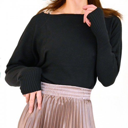 【ハイライン】 超ゆったり!! 萌え袖ドルマンニット 長袖 ブラック