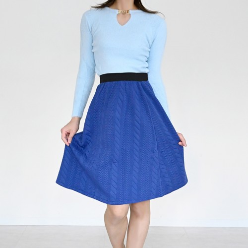 HOME » ファッション » ボトムス » 超伸縮!! 上質生地の 清楚な膝丈スカート ブルー