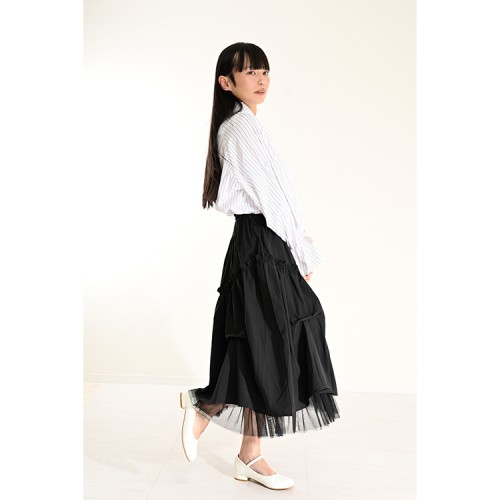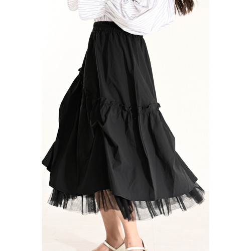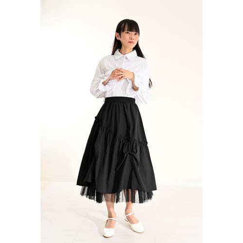 » 【ハイライン】 裾レースミドル丈 スプリングスカート ブラック