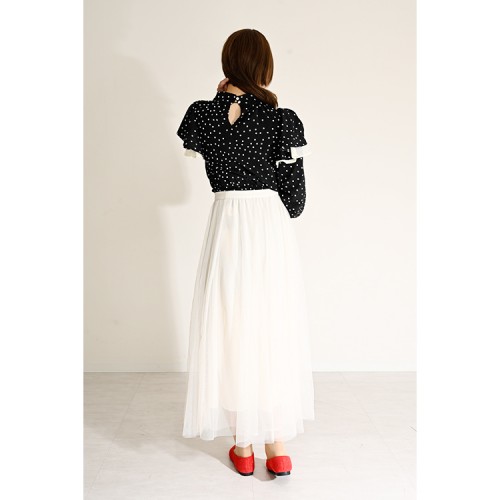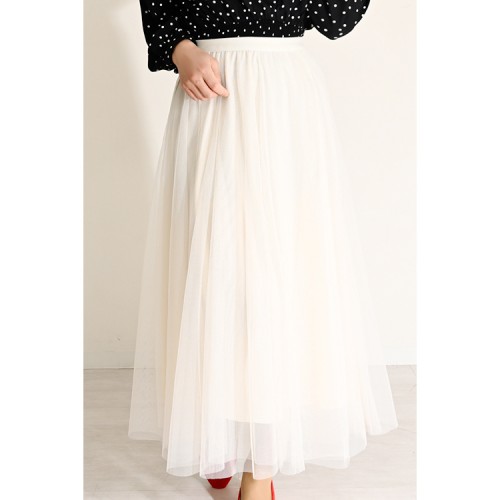 【ハイライン】 春のチュールレイヤード ロング丈スカート ホワイト系