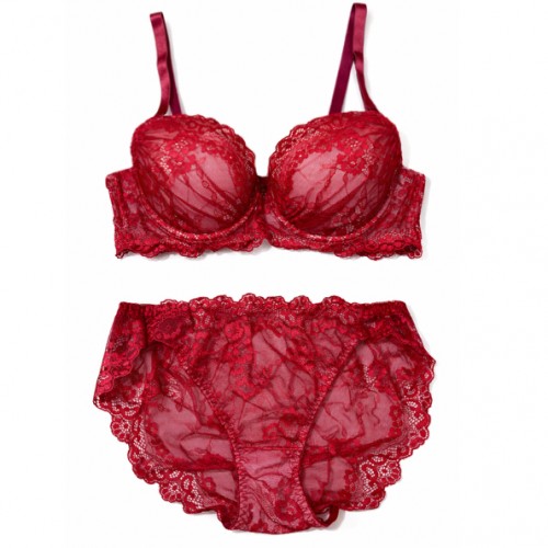 レッドレースが情熱的な大人のブラショーツセット♪SIZE