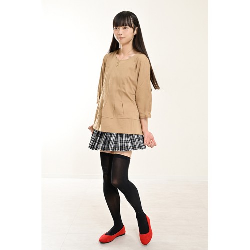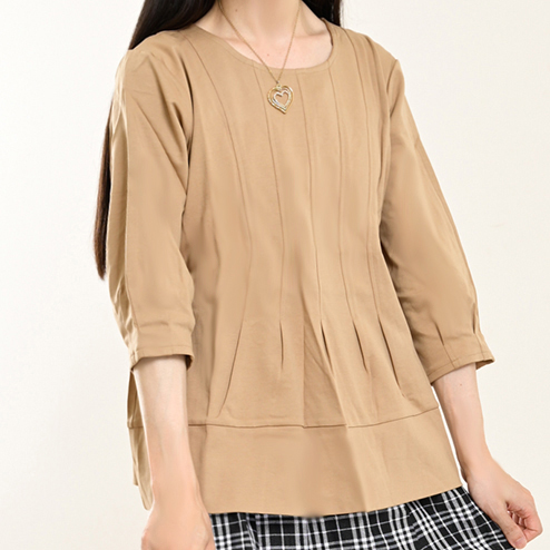 伸縮&ゆったり♪ ラウンドネックキャメルカットソー 七分袖