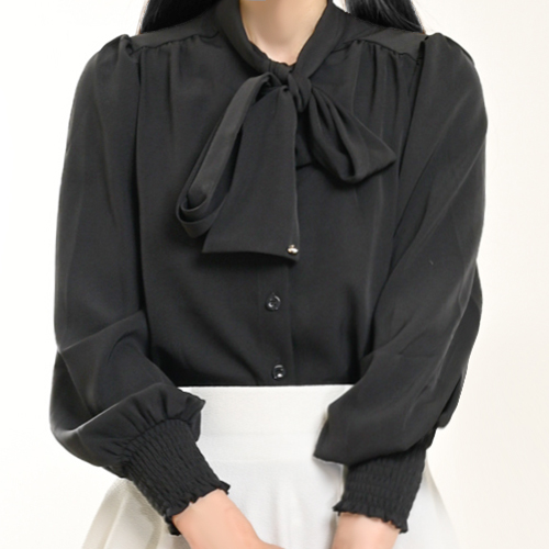 HOME » ファッション » トップス » 【ハイライン】 4月限定 清楚系☆ フェミニンリボンタイブラウス ガーリーブラック 長袖