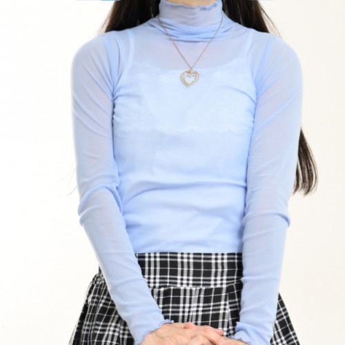 伸縮!! お姉さん系 シアーハイネックトップス スカイブルー 長袖