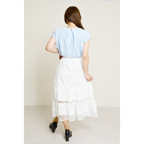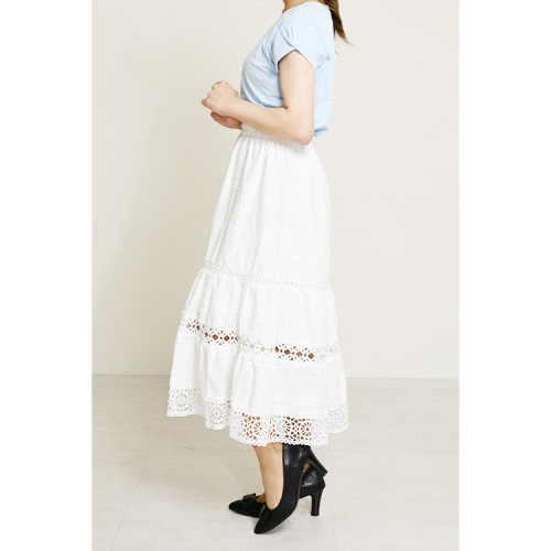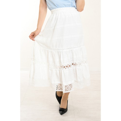 HOME » ファッション » ボトムス » 【ハイライン】 大人可愛い系 レーストリムティアードスカート オフホワイト